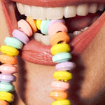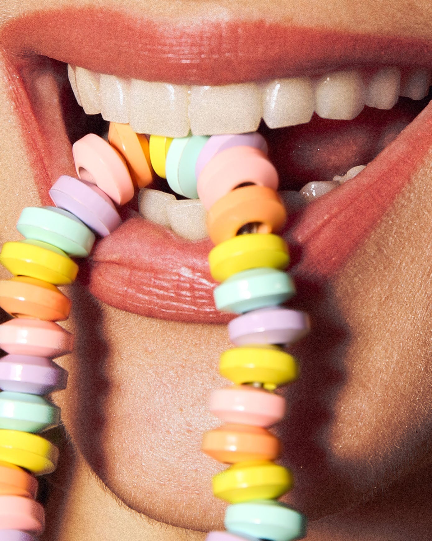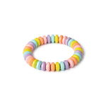 It's literal arm candy. The Bonbon Bracelet is a nod to the iconic candy bead bracelets of our childhood and is designed to be stacked for a delicious, one-of-a-kind statement. This pastel-colored bracelet is coated in enamel and strung on an 18K gold-plated spring. It has a weight that feels substantial on your wrist. The perfect summer statement bracelet to compliment your look.
